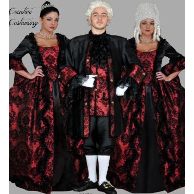 Gothic/VampireIncludes: Deep burgundy/black flocked taffeta gown with fitted bodice, back zipper, skirt with elastic waist & side zipper. 2 piece.Size (Bust, Waist, Hip):S (B:34"/W:26"/H:36"), M (B:36"/W:28"/H:38"),L (B:39"/W:31"/H:41"),Plus size (14-22) B