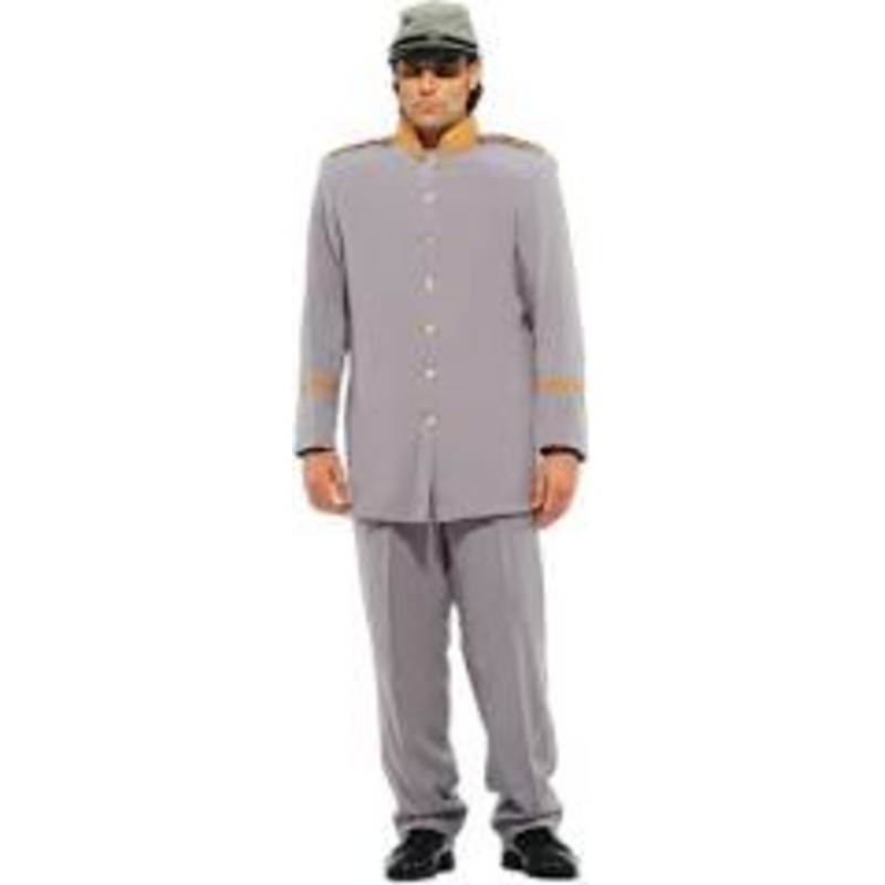 Includes: Grey jacket accented with contrasting gold collar and sleeve cuff trim, trousers with pockets and contrasting braid on side seam.Color: Grey (shown)Size: M (38-40), L (42-44),XL (46-46), 2XL (50-52)Made in USA /Button closure /Machine Wash /Trous