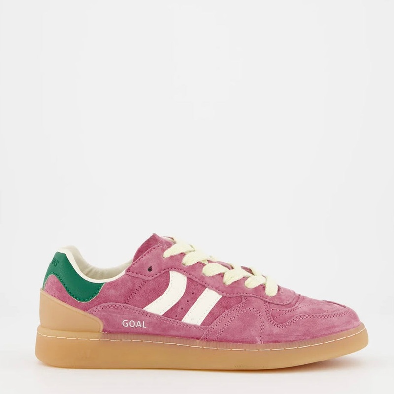 Coolway Goal Sneaker in pink lemonade. Fits true to size.Step up your sneaker game with the GOAL sneakers, crafted from premium split leather with bold contrast details. Designed in Spain, they feature a preformed leather tongue with soft padding, visible