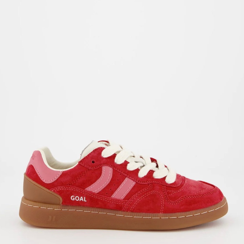 Coolway Goal Sneaker in red love. Fits true to size.Step up your sneaker game with theGOAL sneakers, crafted from premium split leather with bold contrast details. Designed in Spain, they feature a preformed leather tongue with soft padding, visible leathe