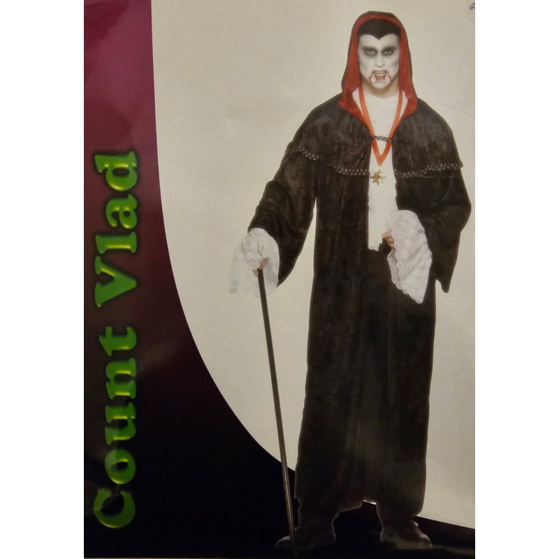 Smiffy's Count VladIncludes: Robe with HoodSize: Adult/One SizeOptional Accessories:Vampire Medallion NecklaceVampire FangsVampire Makeup PaletteVampire BloodSM25044