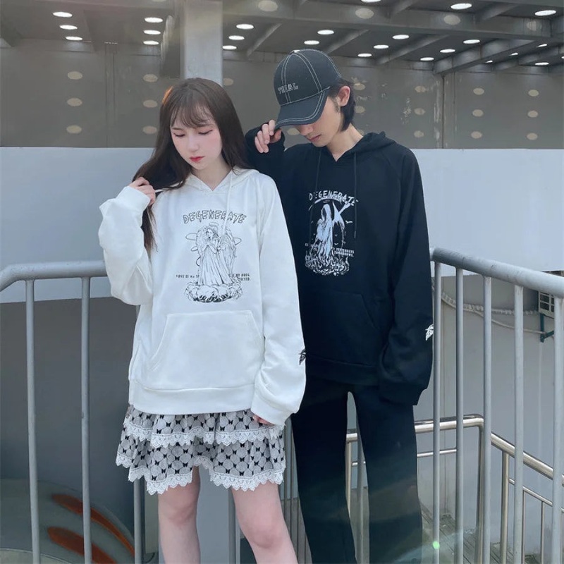 Be the first to review “Couple’s Cool Black And White Print Shoulder Hoodie White angel S”