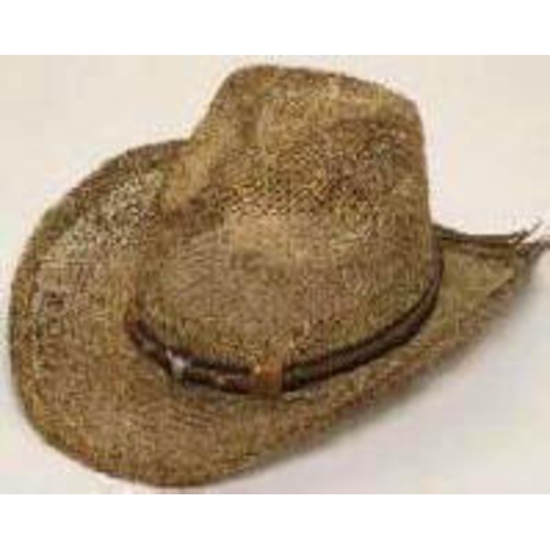 J22782 With Leather & Metal Hat BandColor: Natural (shown)Size: One SizeAdjustable w/elastic sweatband