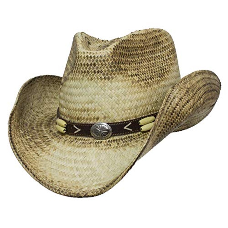 Fine Palm Straw with traditional pinch front crease brim accented with Conchas & Beads on Band.The hat's interior has an elastic fabric sweatband which functions for both comfort and a secure fit.3.5" Brim 4.5" Crown /Fabric sweatband interiorColor: Antiqu
