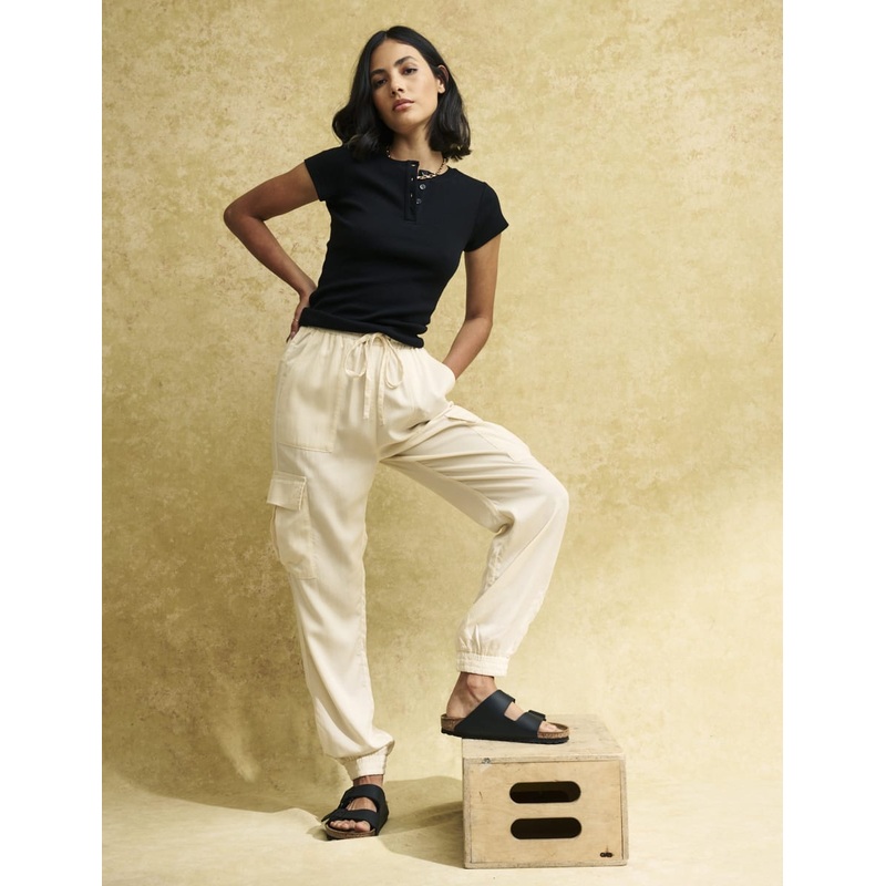 Our obsession with cargos continues. These cream utility-inspired joggers are soft enough for relaxing but stylish enough for socialising. We love the statement pockets and comfortable drawstring waist. Style yours with a chunky slides for catch ups over coffee.