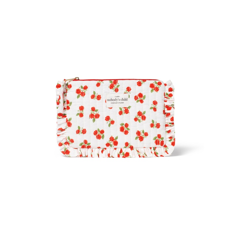 Made for the bits you want to keep close. With a frill trim and zip closure, this white pouch with red florals keeps your daily essentials in one place.