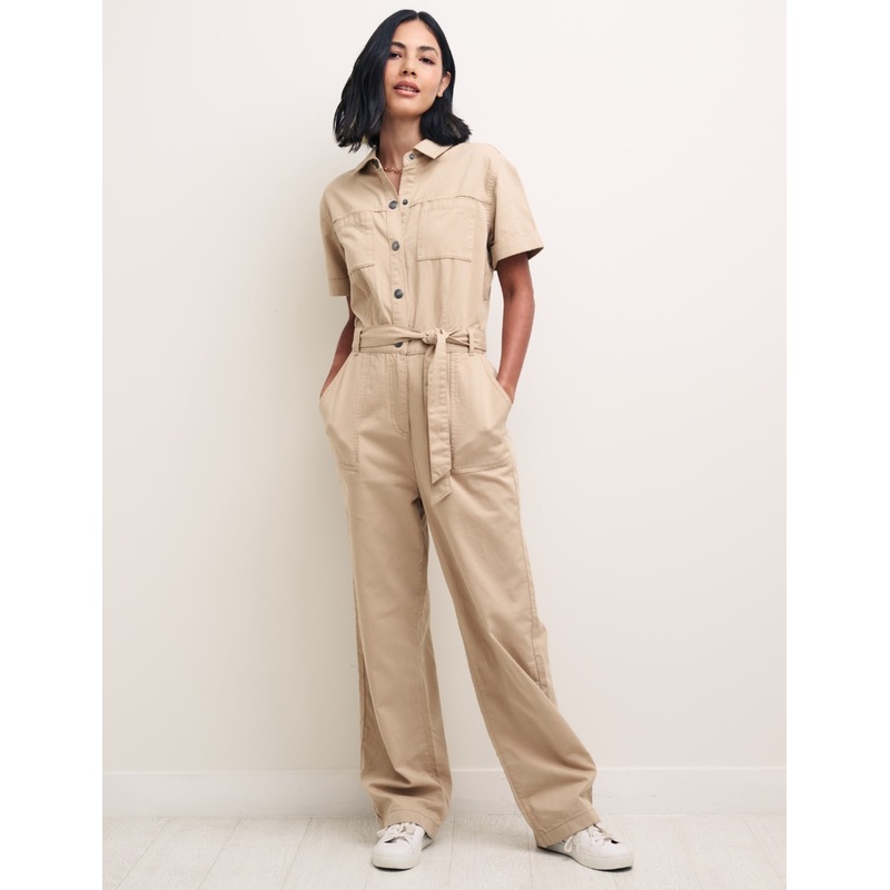 The feelings neutral. This utility-inspired jumpsuit is a dream in soft beige. Faith is made with oversized pockets, NC buttons and a flattering waist tie. Wear her everywhere from working lunches to weekend brunches. Just add trainers.CollarShort sleevesN