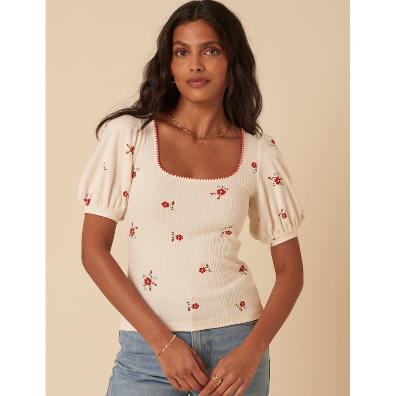 Square neck Short puff sleeves Size tip: we recommend your usual size