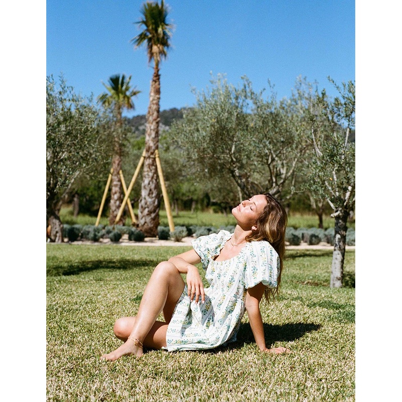 Breeze around. This white smock dress is a dream in a mini length with ultra-puff sleeves. Add to suitcase and go.