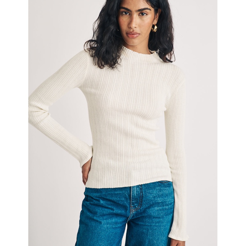 Your new go-to, this classic top comes in cream. Featuring a high neck, long sleeves and a soft ribbed texture, youre sure to wear it week after week. Style yours with denim, boots and gold jewellery.
