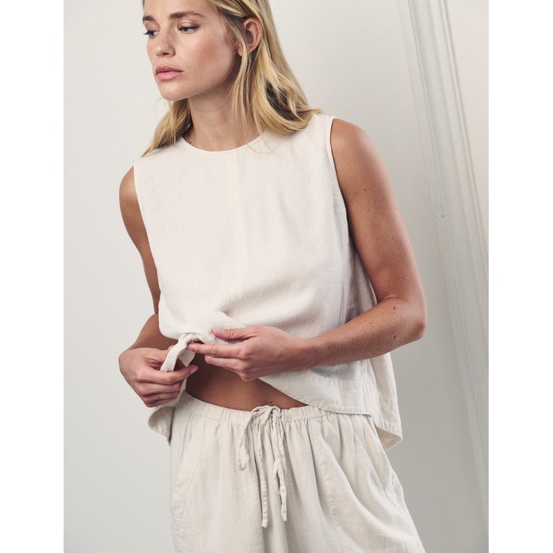Cream Linen-blend Swing Top