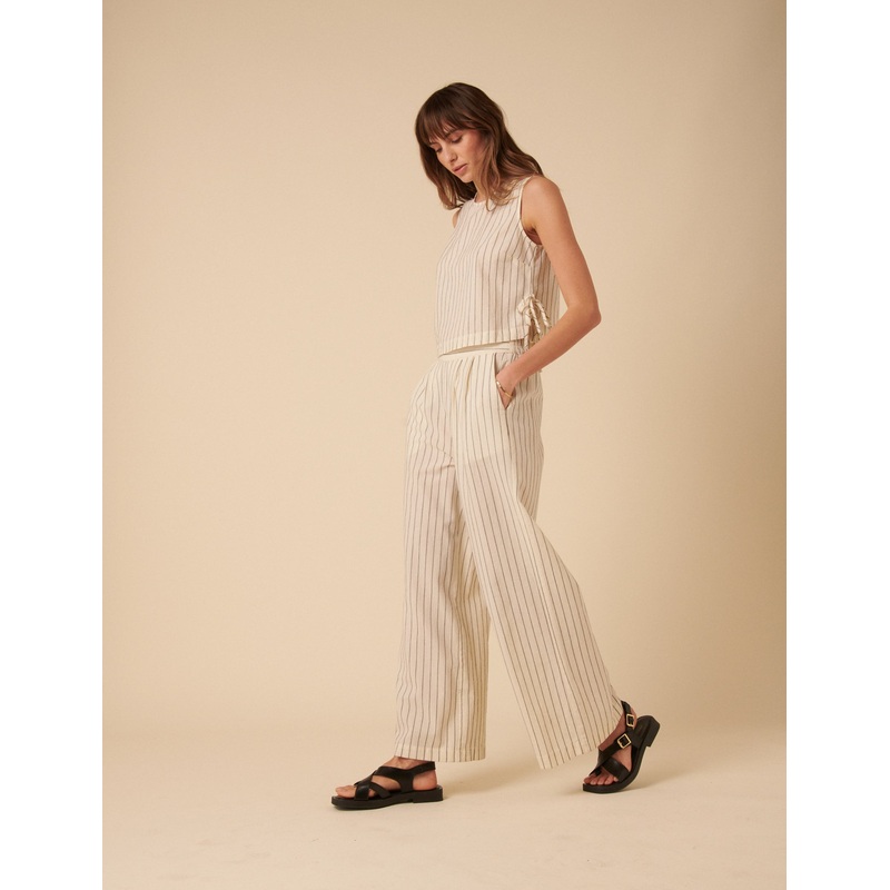 Every wardrobe needs these. Our softly striped trousers sit high at the waist and fall to a wide leg, they even have side pockets. Style with our matching top.