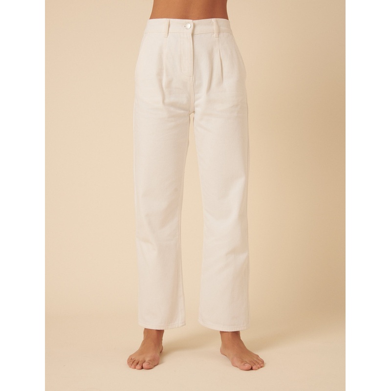 Subtle pleats meets denim jeans. Coming in cream, our jeans fit high on the waist with a double pleat front and a relaxed cut designed to flatter.
