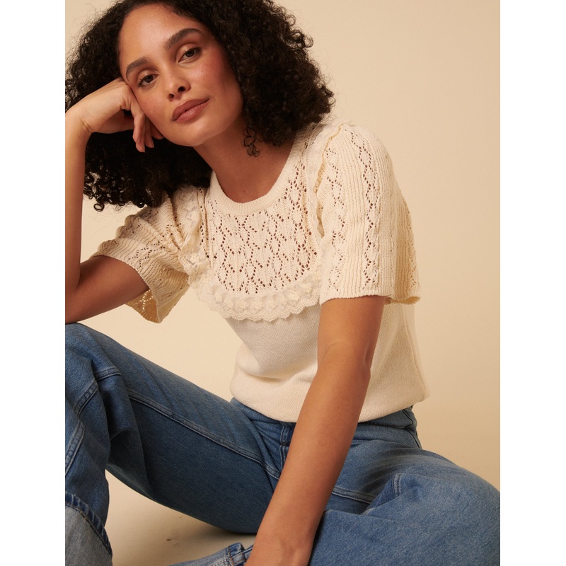 Round neck Short sleeves Size tip: we recommend your usual size We recommend folding your knits to avoid any unwanted stretching