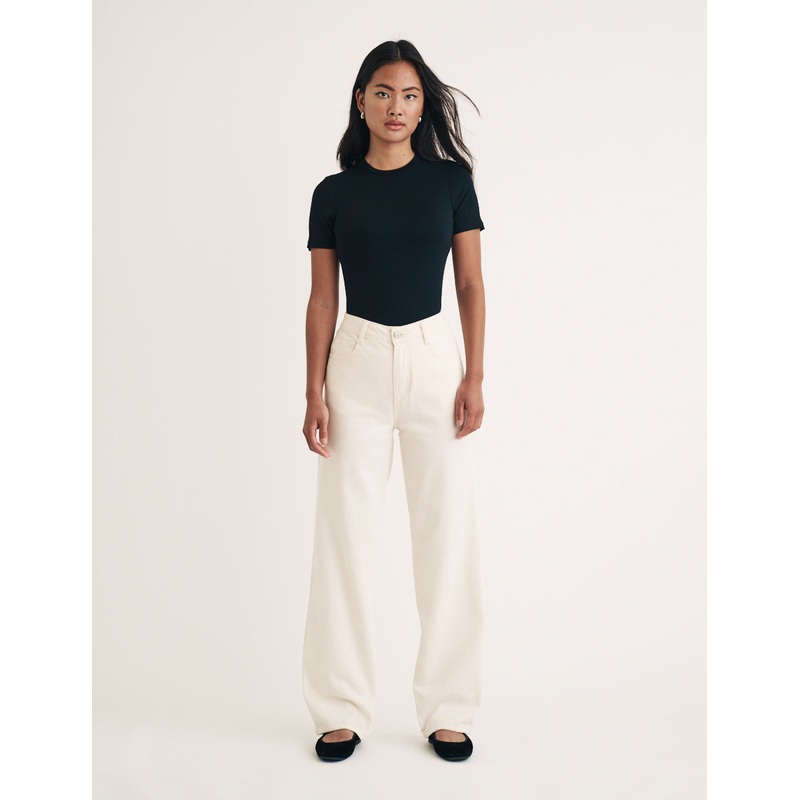 Your new favourite jeans. Designed to flatter, this straight leg style is fitted at the waist and relaxed through the hips. Were obsessed with the cant-go-wrong cream colour. Wear with your favourite little black top.
