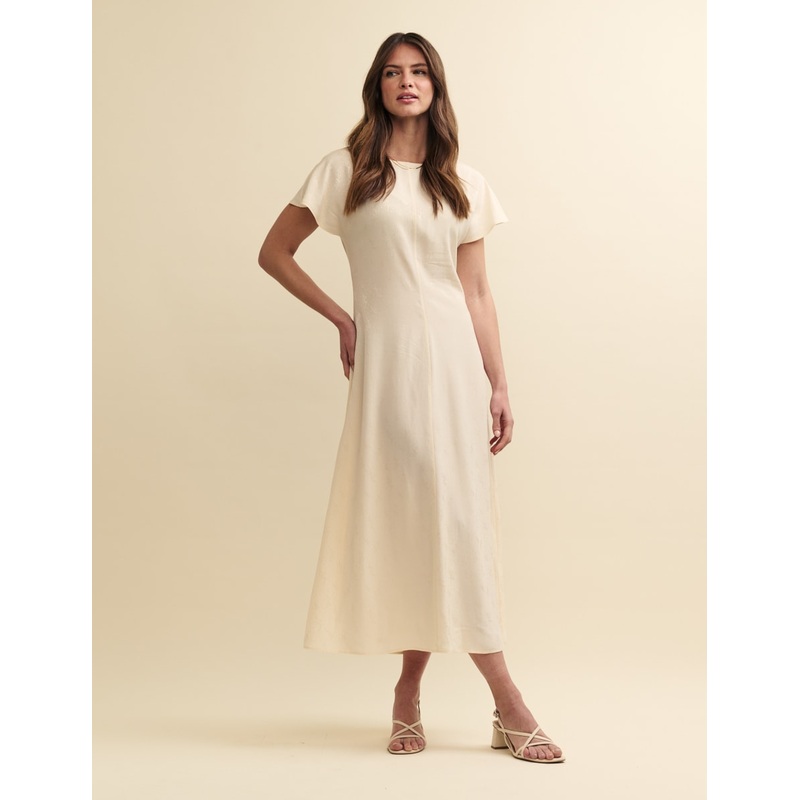 Take this cream dress to your next event. Selma drapes like a dream in an effortless midaxi fit. Its sure to become a go-to for years to come. Finish with your favourite earrings.Round neckA-line skirt that skims the bodySize tip: we recommend sizing down