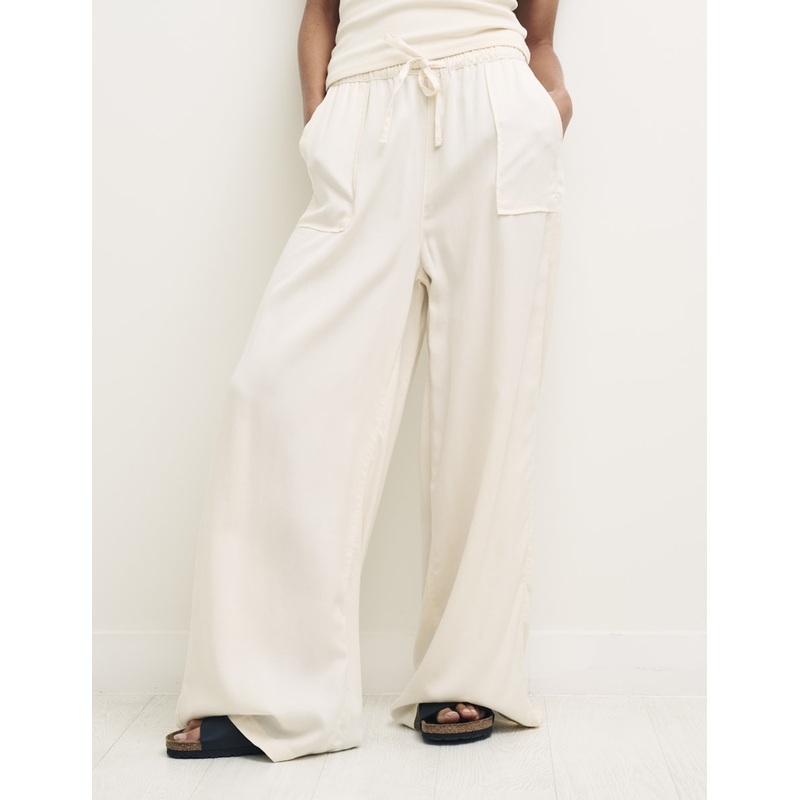 Easy as a Sunday morning. These breezy wide leg trousers have been stitched with oversized pockets and a soft drawstring waist for ultimate comfort and style. Its not often the two come hand in hand and were obsessed. Team yours with a cute top and suede slip-on shoes. Theyre as relaxed as you need them to be.
