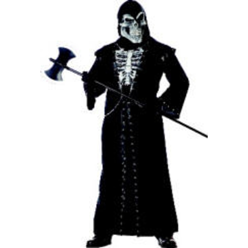 Includes: Poly Robe with Grommet & Chain Trim Accent, Screen Print Hood & Skull MaskColor: Black (shown)Size: M (40-42), L (42-44),XL (44-46), Plus (48-52)(add $4)