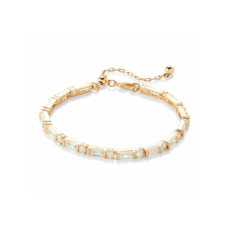 The Rectangle Crystal Bracelet in GoldSophie Harperwith clear crystal along the entire bracelet. Measuring 6.5″ in length with a 1.5″ extender and finished in a high polish shine.
