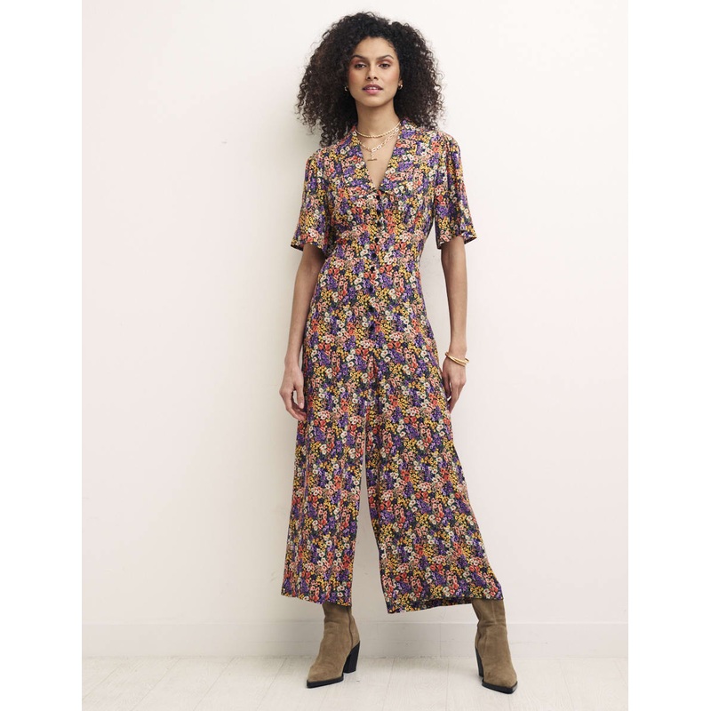 In a painterly meadow print, Daisy is a floral jumpsuit shaped with flared sleeves that perfectly balance the stylish wide leg cut. We love her with boots for days that turn into nights out. V-neck Drop collar Flared sleeves Button front Wide leg cut that