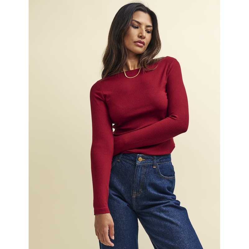 Theres something about a slash neckline that just feels that little bit more elevated. Add this one to your wardrobe in statement red. Dress yours up with gold jewellery or dial the look down with jeans.Boat neckLong sleevesRibbed textureSoft stretch jerse