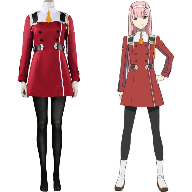 DARLING in the FRANXX - 02 Halloween Carnival Suit Cosplay Costume Dress OutfitsMaterial: Thickiy Ronior Fabric + Uniform Cloth + Faux Leather + PU LeatherPackage included: Pantyhose + Dress + Belt + Hair Accessories + Other Accessories