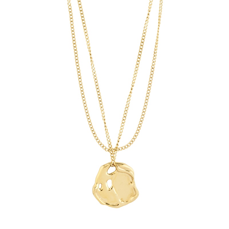 New dawn, new day, new dreams. Leap into the summer adventures with the gold-plated necklace from ‘s DAWN series. Two chains in one set offer you the perfect layered style that effortlessly matches this season’s understated luxury trend. Sleek curb chains measuring 40 cm + 12 cm extension chain are complemented by an eye-catching coin pendant featuring a melting design, giving your outfit an artisan handcrafted vibe. Made from waterproof quality with 99% recycled material, the DAWN necklace is a styling choice you can be proud of.