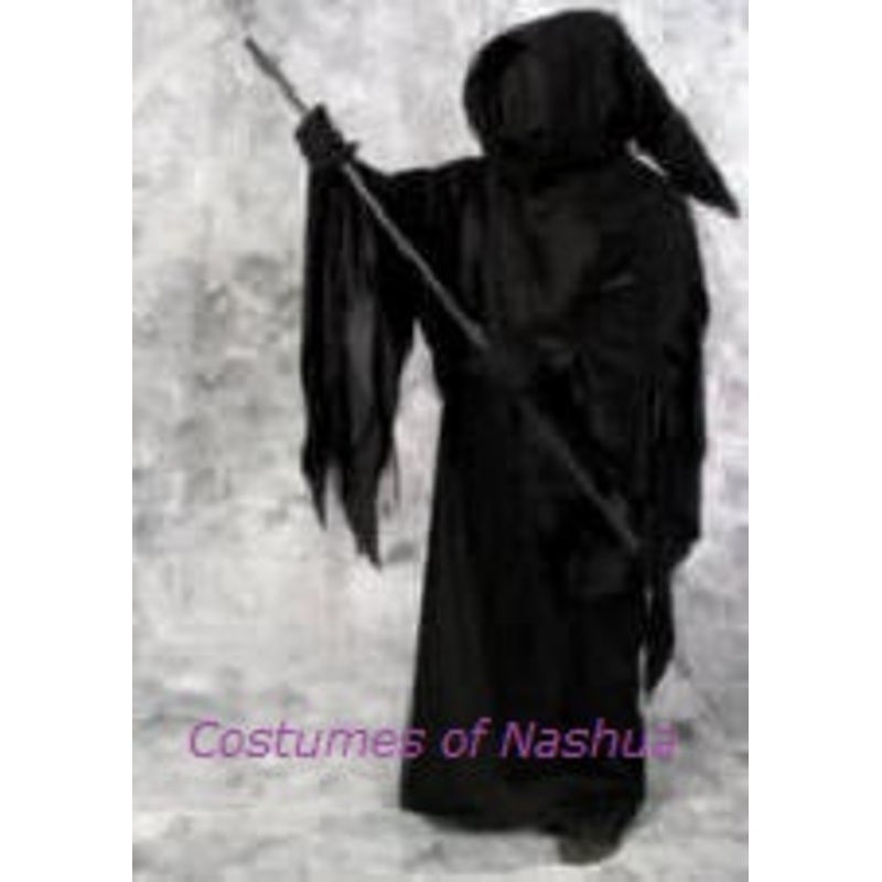 Death Stalker...who is in there? Black robe with a hood that includes a face screen that you can see out ofbut no one can see you.Very Good Quality!Includes: Black hooded robe with attachedsee thru face mask and drop sleeves.Size: One SizeColor: Black (sho