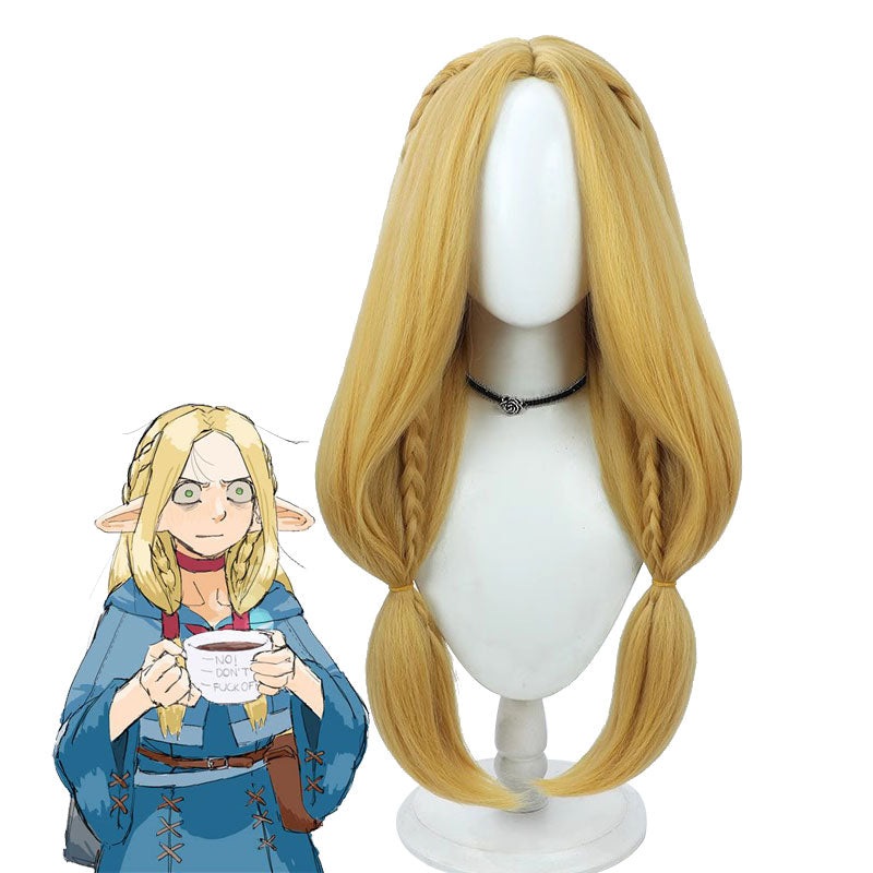 Delicious in Dungeon Marcille Donato Gold Cosplay WigsSource:Delicious in DungeonCharacter:Marcille DonatoColor:GoldLength:70cm/27.6inchFeatures: Thiscosplay wigis based on the characterMarcille Donatofrom Delicious in Dungeon. This fashion wig can be used