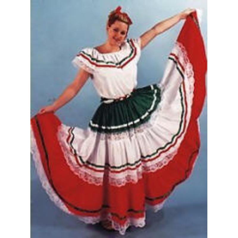 A18437 Includes: Skirt, blouse, and belt.Color: Tri Color Green, RedSize: One size