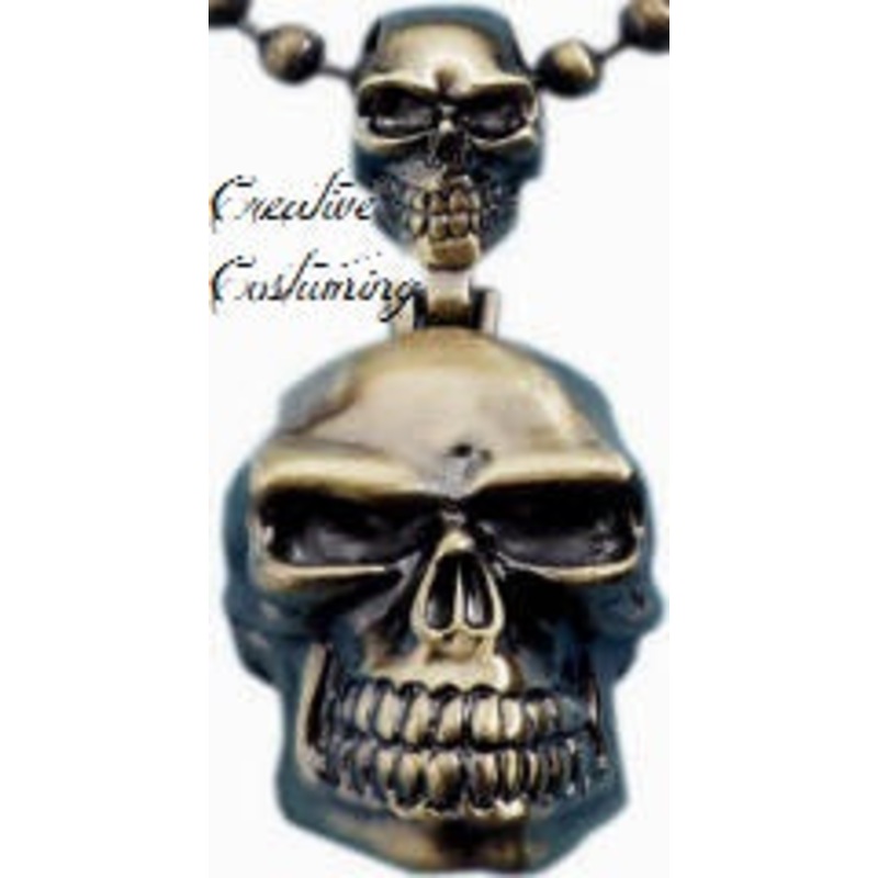 Pirate NecklaceVery Good Quality.Antique gold skull medallion necklaceon a gold chain.Color: Gold