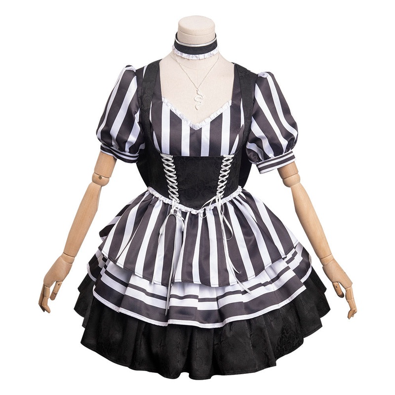 Demon Slayer Iguro Obanai Cosplay Costume Dress Outfits Halloween Carnival Party SuitMaterialSatinPackage included:Dress + Bowtie + Headband + Necklace + Other Accessories