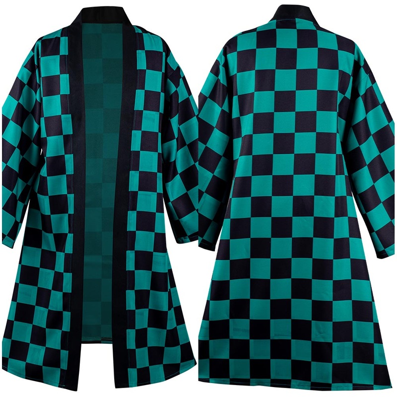Demon Slayer Kamado Tanjirou Halloween Carnival Suit Cosplay Costumes with Earrings BeltMaterial: Uniform ClothPackage included: Belt + Coat + Earrings