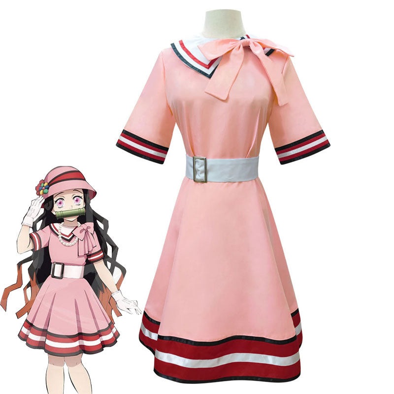 Series:Demon SlayerCharacter: Nezuko KamadoIncluded Items: dress, hat, bow, belt.Material:polyesterCare Instructions:Hand wash in cold water, hang to dry, no bleach.Size:AsianSize,thesizechartmayhave1-3cmerrorduetothemeasuringmethod, 1cm 0.39Inch.Tip:Asian