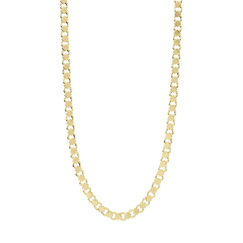 Fall in love with a classic with the gold-plated DESIREE necklace from , a recycled item made from 99% recycled material. The unique chain design highlights the beauty of contrasts by combining cubes with round links. A shiny centrepiece for a stylish and confident look. The necklace measures 45 cm + 15 cm extension chain.