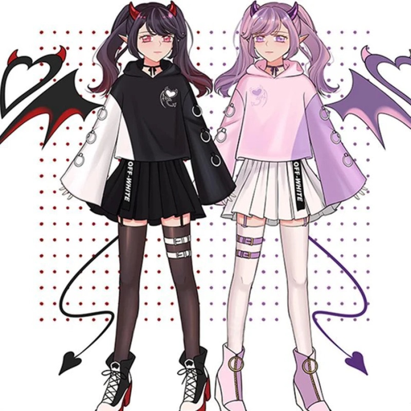 Pink Hoodie, BlackHoodie, White Skirt, Black Skirt.