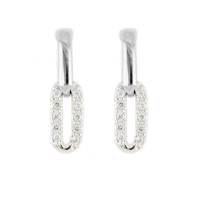 Diamante Small Two Link Pav Post Rhodium Earring