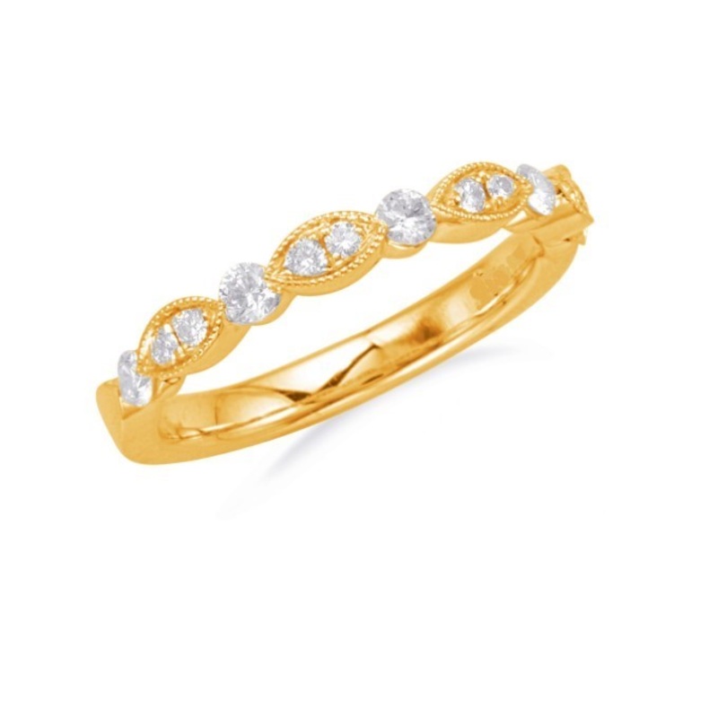18K yellow gold ring with diamonds in a patterned band. 0.33cttw