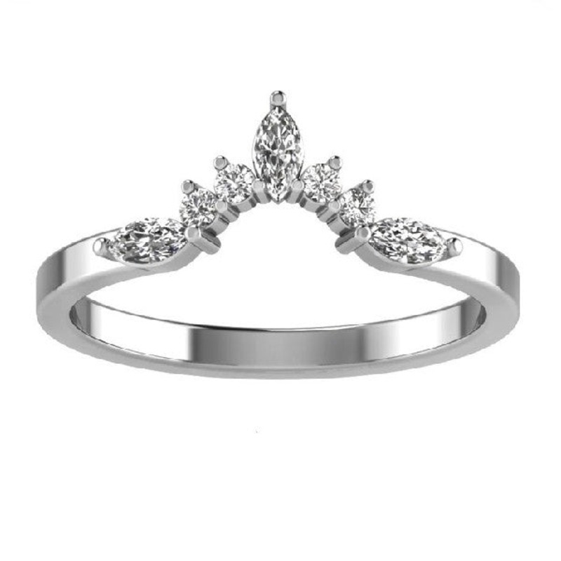 14K white gold crown wedding band with round and marquise diamonds. 0.99cttw