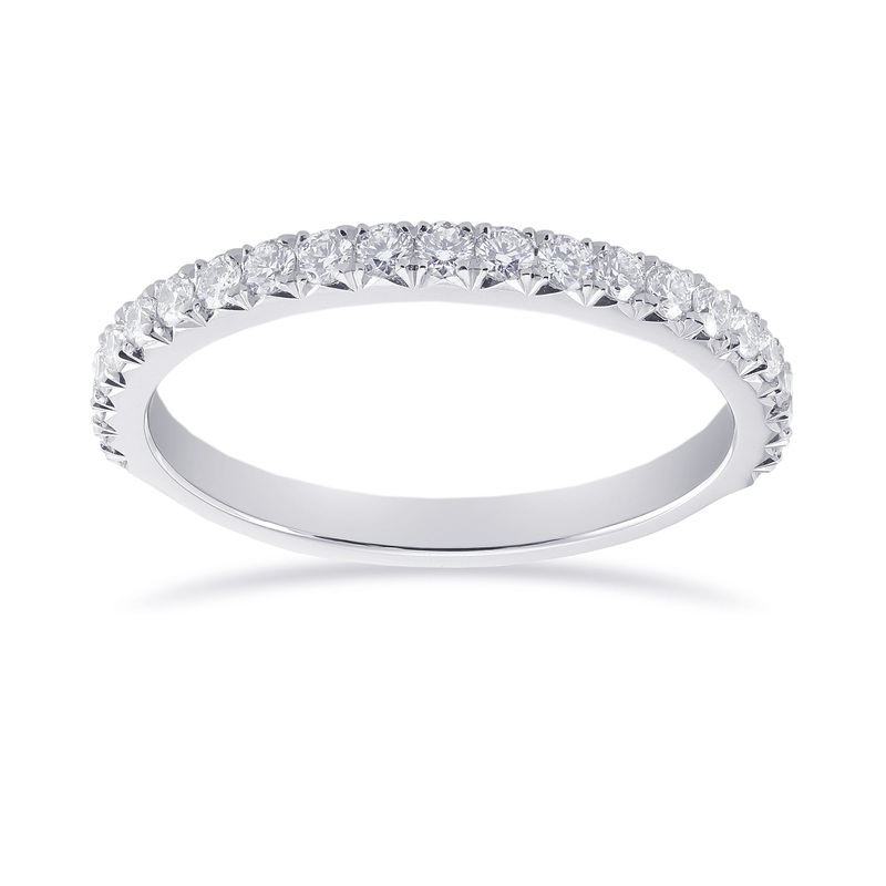 A classicDiamond Wedding Band styled with 23 F+ color brilliant cut diamonds in a French Pave setting. The ring is mounted in Platinum.