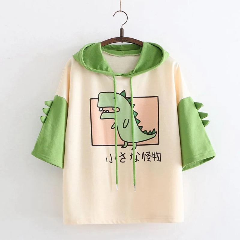 Be the first to review “Dinosaur Cartoon Japanese Hooded T-shirt J10023 As Shown One Size”