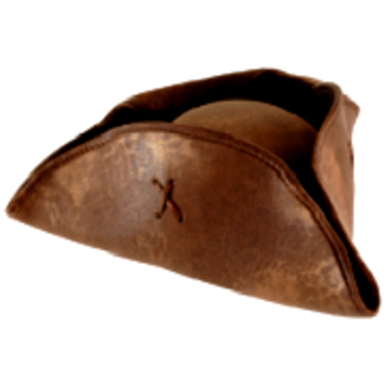 Authentic, Distressed faux leather, blocked deluxe tricorn hat is made the old world way, by pressing the material around a shaped block. This hat includes Fabric lining & Elastic cotton sweat band.