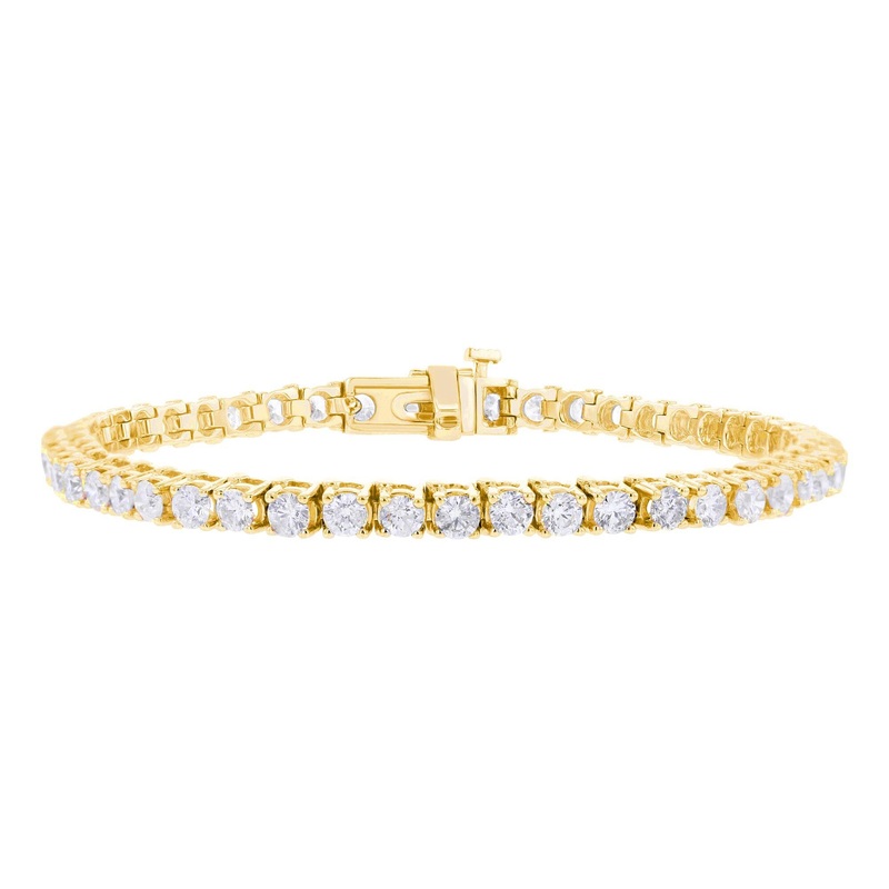 A diamond tennis bracelet that gives off maximum sparkle, 5 carats total weight of high quality round brilliant diamonds set in 14 karat white gold, these components come together to create a classic and timeless look.