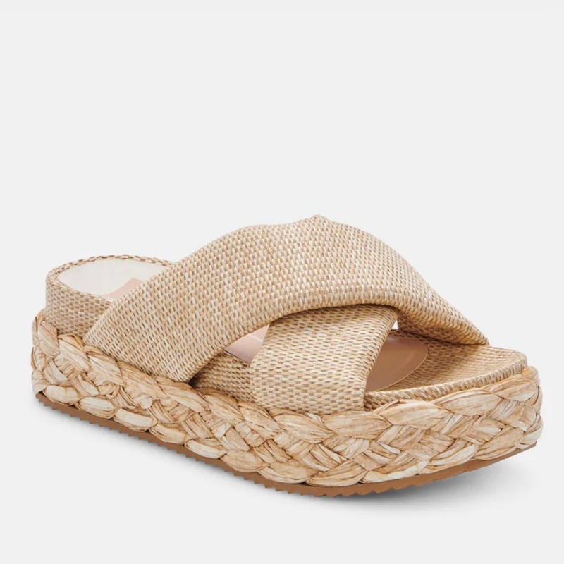 Dolce Vita Blume Sandal in Natural.Crisscrossed comfort. BLUME is our irresistibly chunky slip-on slide, complete with cool braided detail, wide crisscrossed straps and a bouncy platform sole for even more on-trend appeal. And since she's made with water-b