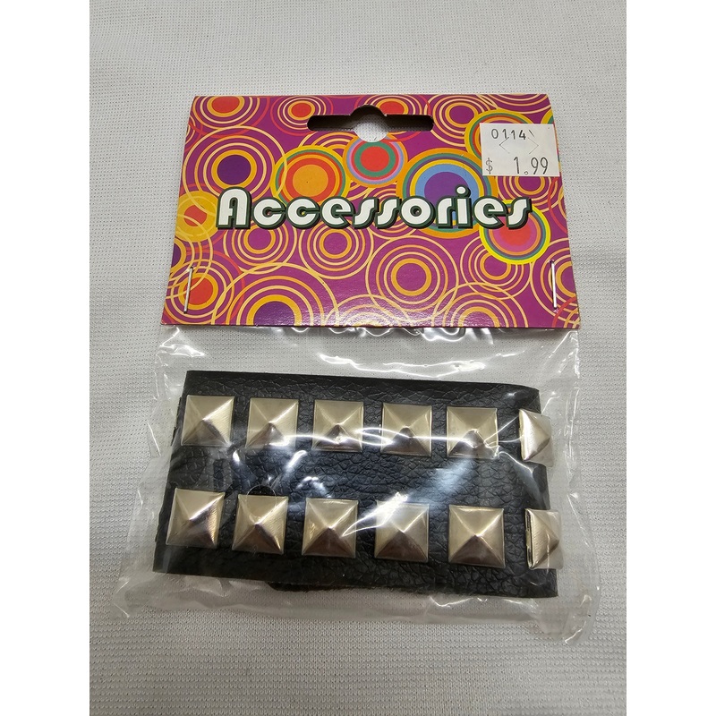 Complete your costume with the Spiked Wristband Adult Halloween Accessory! This leather band features a double row of pyramid-shaped metal studs! Adjustable snaps provide a comfortable fit! It’s just the accessory you need for Halloween, character or historical reenactments, parties, plays, parades, family occasions and other holiday productions and festivities!