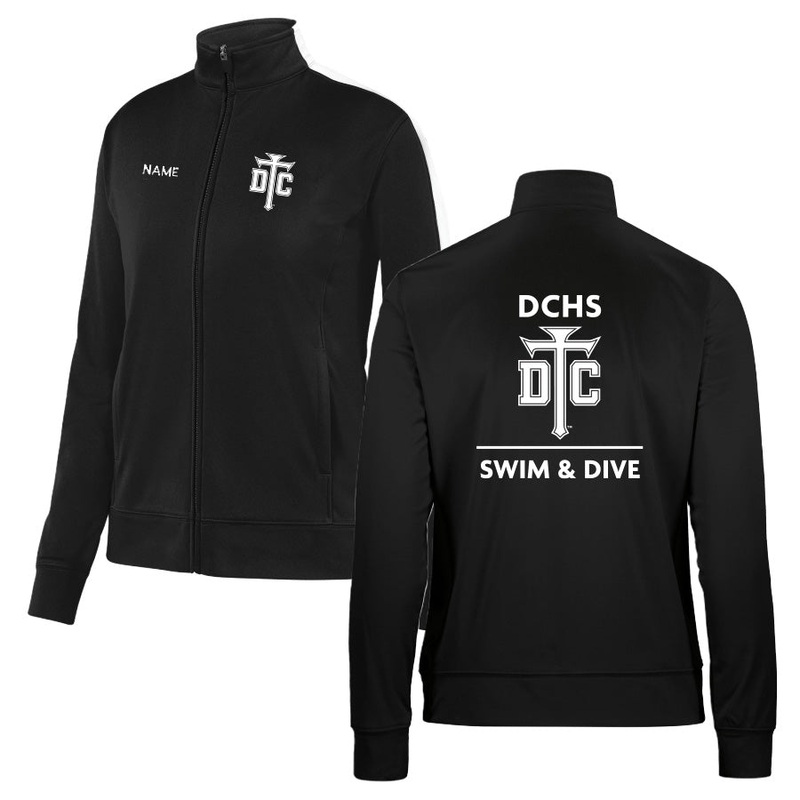 Warmup jacket; price includes the following:logos/embroidery AND nameOn the back: DC cross and Swim * DiveOn the front: swimmer's NAME and the new DC cross logoNO returns or exchanges on custom items