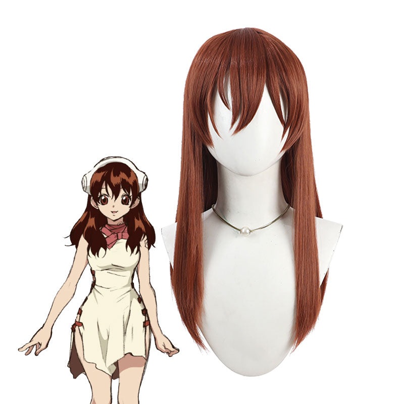 Anime Dr Stone Yuzuriha Ogawa Cosplay WigsSource: Dr StoneCharacter: Yuzuriha OgawaColor: BrownishRedLength: 55cm/21.67inchFeatures: Thiscosplay wigis based on the character Yuzuriha Ogawa from Dr Stone. This fashion wig can be used incosplayconventions an