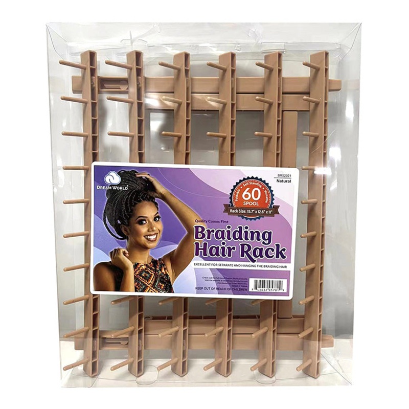 The DREAM WORLD BRAIDING HAIR RACK is a must-have for any salon. Its 60 spool design is easy to organize, separate, and grab hair or thread. With its durable plastic material, it is designed for long-time use, and is easy to clean and sanitize. Its stylish