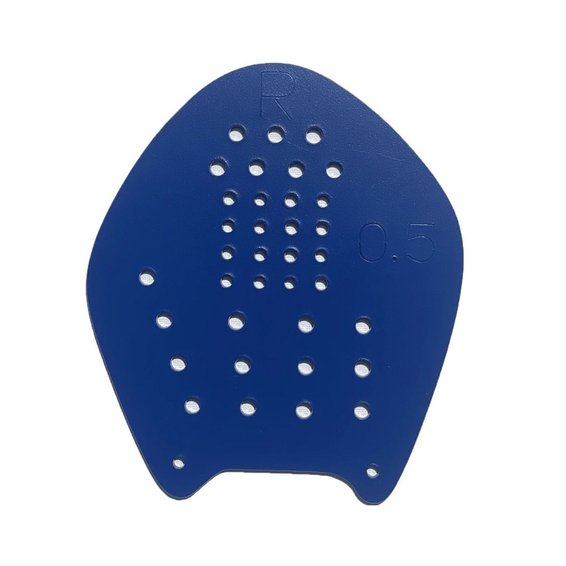 Strokemakers were designed to build strength and provide stroke correction. The hand should fit completely on the paddle with the thumb and first finger near the edge allowing the pinky to have some space on the outside edge. Hand size in relation to the paddle is the primary way to determine correct sizing. The hand being slightly offset allows for fully finishing the stroke and the outer edge water foil builds strength without putting pressure on the joints.