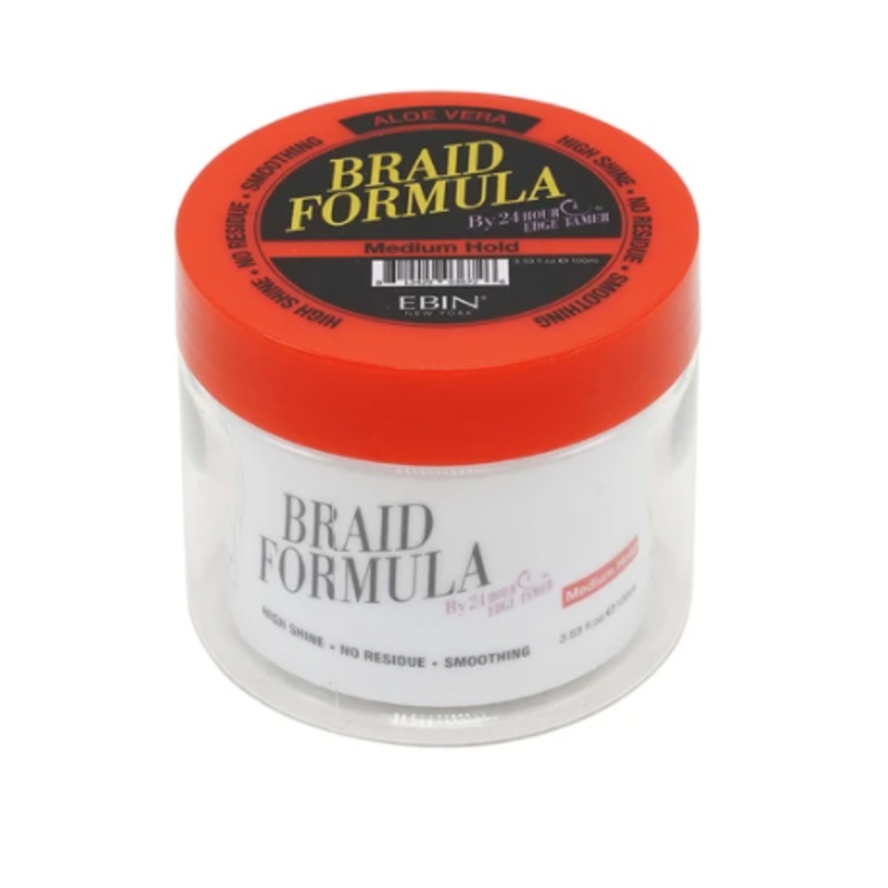 EBIN BRAID FORMULA 3.53OZ is a specially formulated product designed to work on all hair textures for the best braids. It helps maintain strong and firm styles, ensuring your hair remains moisturized and shining, giving you the time to achieve the perfect